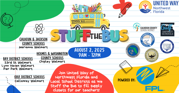 Join us for a feel-good morning of giving back! United Way of Northwest Florida is hosting our annual Stuff the Bus school supply drive, and we need awesome volunteers like YOU to help make it a success. The Pier Park Location will have 1 bus - for Bay County School District.